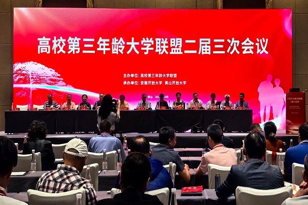 本网永利23411集团讯 10月13日,全国高校第三年龄大学联盟二届三次会议在安徽黄山隆重召开。此次会议由安徽开放大学、黄山开放大学承办。来自全国65所高校、19家理事单位的140余名代表齐聚一堂,共商新时代老年教育高质量发展大计。王进博代表联盟职业院校工作委员会在开幕式上作工作报告,并应邀主持联盟闭幕式。